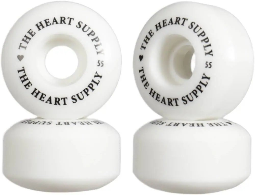 Tvrdá a odolná Heart Supply kolečka s tvrdostí 99A jsou skvělá pro stálou rychlost a úspěšně dotažené triky.