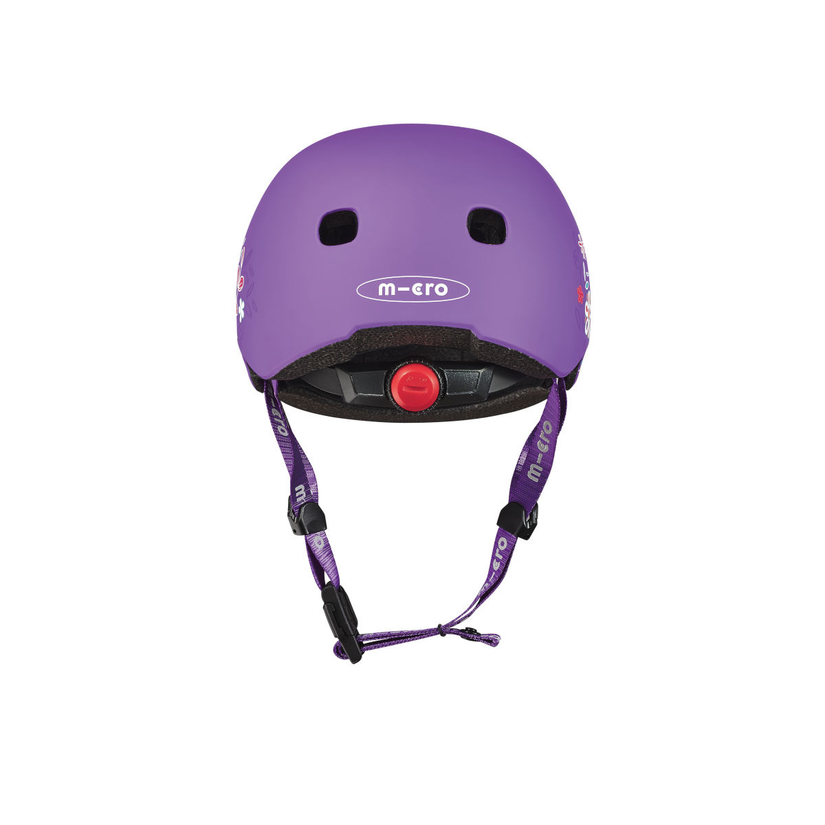 Bezpečná helma značky Micro s nastavitelnou velikostí pomocí upínacího kolečka. Jedná se o fialovou helmu v matu s dekorem květin. Helma je vhodná pro jízdu na koloběžce, dětském odrážedle, kolečkových bruslích a skateboardu. Extra polstrování uvnitř helmy pro větší komfort a bezpečí. 8 větracích otvorů zajistí kvalitní odvětrávání hlavy. Inovativní magnetický systém zapínání výrazně zvyšuje bezpečnost a zjednodušuje zapínání řemínku pod bradou.