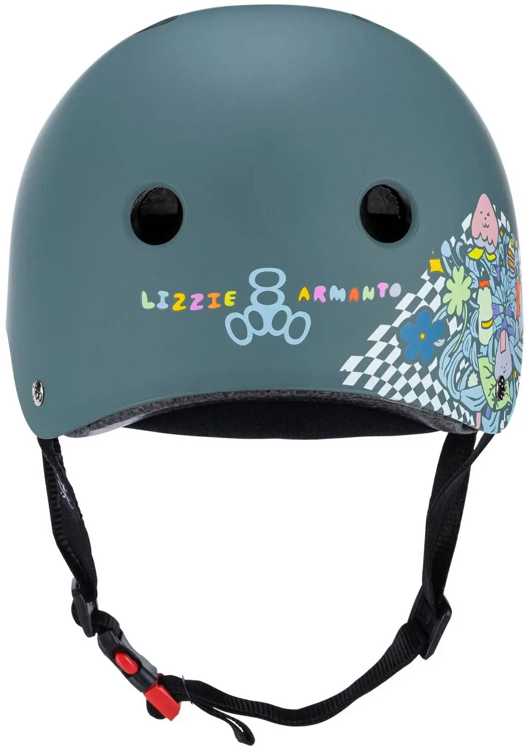 Lizzie Armanto Sweatsaver je helma značky Triple Eight, která udrží vaši hlavu v bezpečí, takže se můžete soustředit na zábavu a učení se novým trikům. Ochranné vlastnosti jsou vysoké, jelikož vnější skořepina je vyrobena z ABS, což je materiál, který byl intenzivně zkoušen a testován. Díky tomu, že je helma vybavena vnitřní skořepinou z EPS, je odolná, lehká a dokáže velmi efektivně absorbovat nárazy.