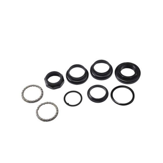 Kompletní černé hlavové složení pro koloběžky 200 mm. Balení obsahuje 9 částí (viz.obrázek). Pro vnitřní průměr hlavy: 30mm Zajišťovací matice 1652 o výšce 20 mm není součástí setu, ale nabízí se zvlášť.