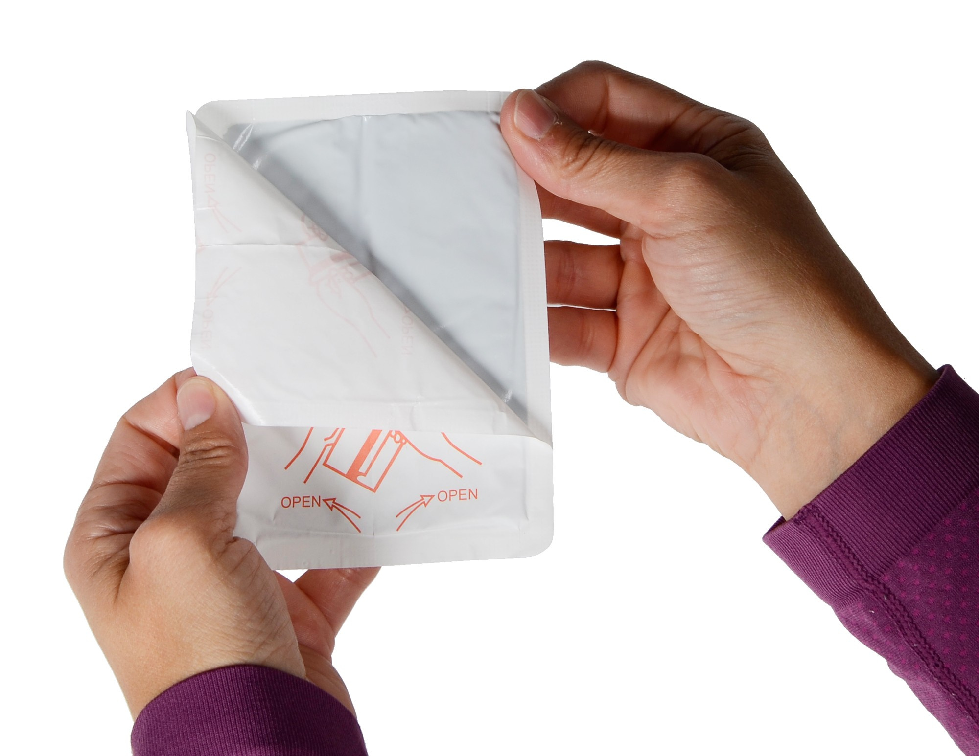 Otevřete vnější obal a vyjměte polštářek na vzduch. Sejměte ochrannou fóli z lepící části polštářku a přilepte polštářek na spodní prádlo na místo, které potřebujete zahřát. Polštářek začne fungovat v nasledujicích minutách.