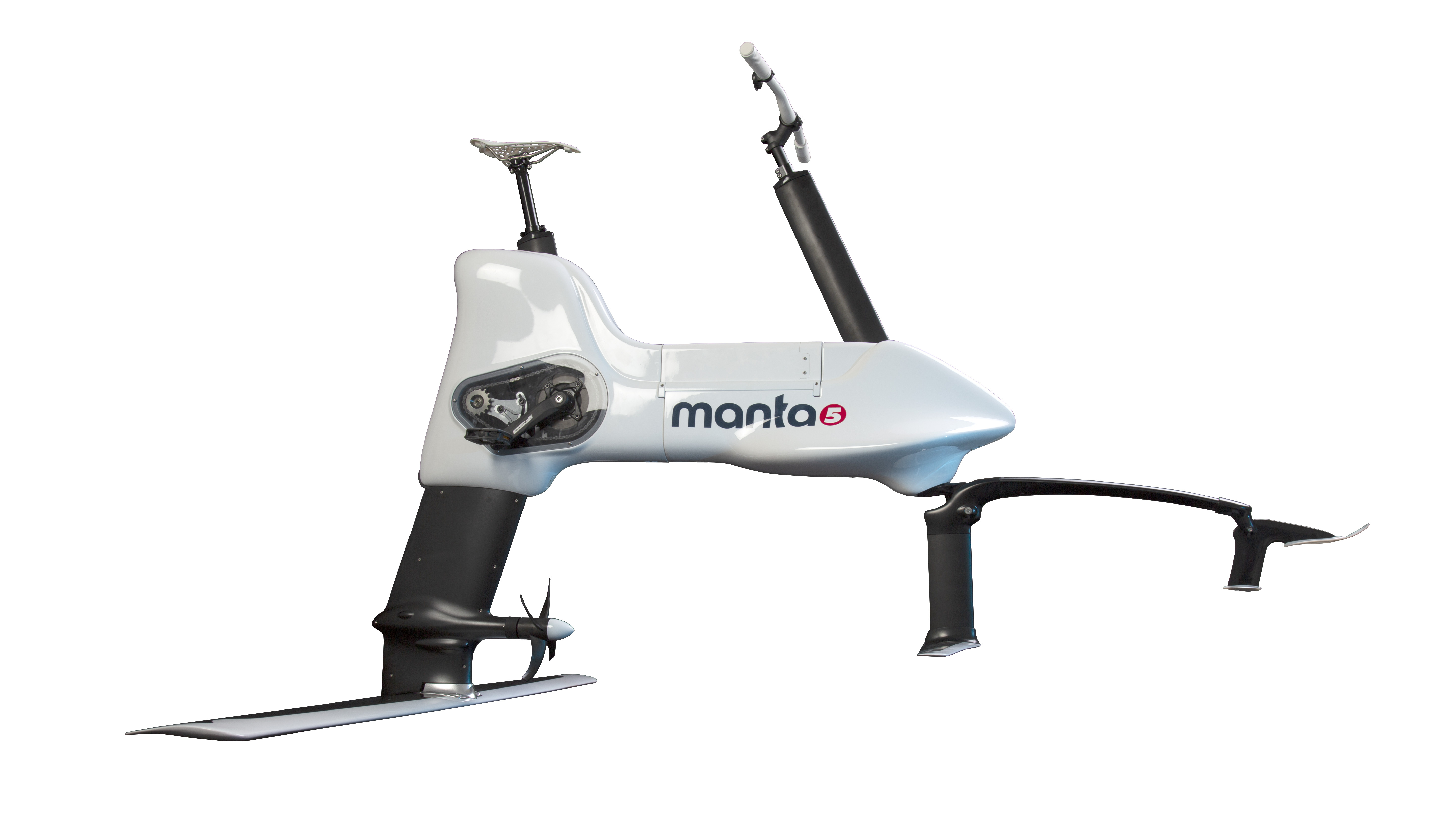 Manta5 se pohání šlapáním stejně jako klasické jízdní kolo. 7 stupňů elektrické asistence 460-ti watového motoru nadchne jak atleta, tak vyznavače rekreační jízdy. Nad vodou vás drží vztlaková síla generovaná dvěma foilními lištami a pohonným lodním šroubem. Při maximálním výkonu lze brázdit vodu rychlostí 16 - 22 km/h.