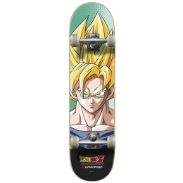 Tento kompletní skateboard, vybavený předem naneseným griptape a zobrazující odvážné obrázky Super Saiyan, nabízí funkčnost i výrazný vizuální dojem.