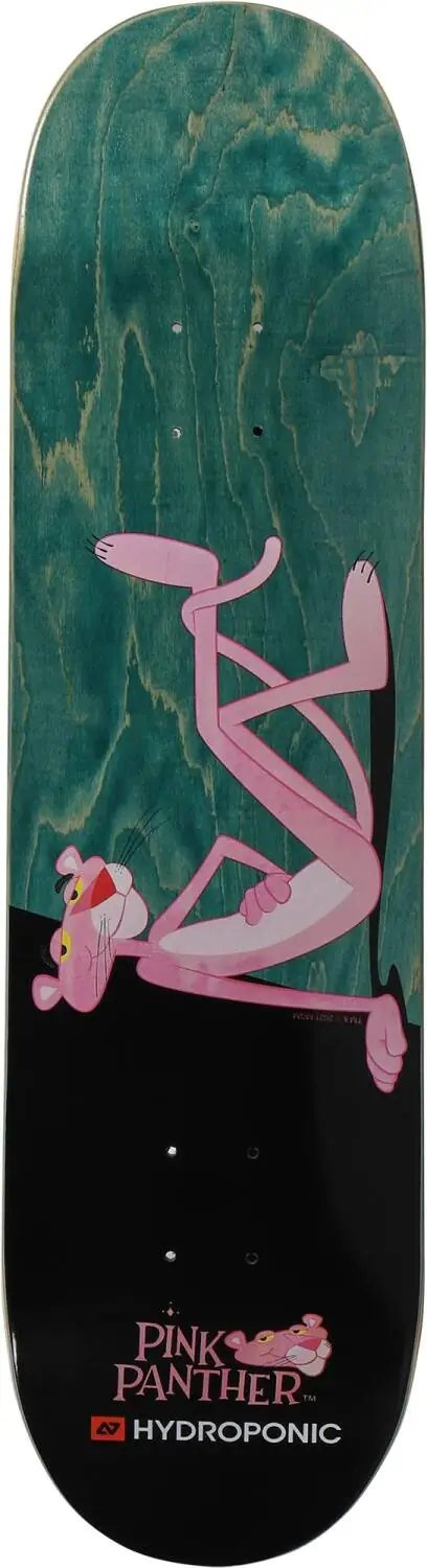 x Pink Panther od Hydroponic je výkonná skate deska, vyrobená z 7vrstvého javorového dřeva hard rock a kanadského javoru a epoxidové pryskyřice. Deska z hard rock javorového dřeva se dobře „nakopává“ do triku a má dlouhou životnost.