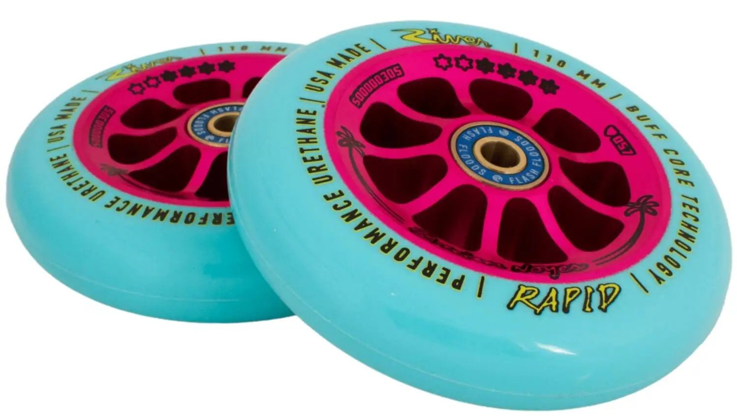 Výborné kolečka vyrobená v USA, Kalifornii. River Glide jsou měkka, ale přitom rychlá kolečka. Mají skvělou přilnavost k povrchu. Kolečka mají přednastavné ložiska. Samozřejmě mají hliníkový střed.