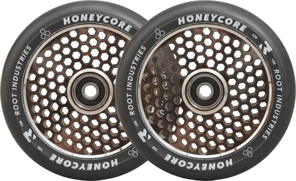 Kolečka HoneyCore od Root Industries mají unikátní perforovaný vzhled se strukturou medové plástve. Nejenom, že vypadá skvěle, ale pomáhá i udržet hmotnost na hezky nízké hodnotě 220 gramů na kolečko. Kolečka HoneyCore jsou součástí série koleček Roots Air.
