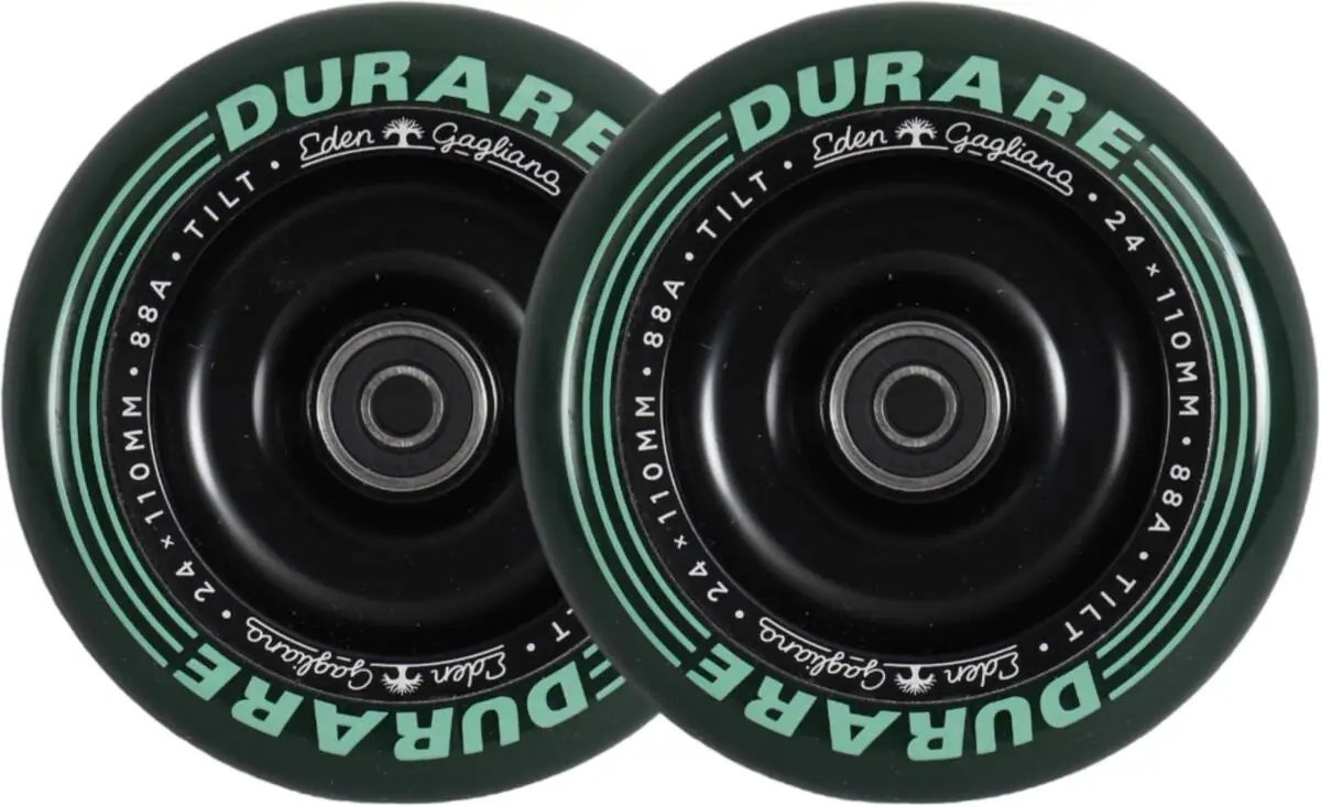 Tilt opět jako každý rok představilo novou kolekci o spoustě náhradních dílů. Mezi nimi najdeme i signature kolečka od jezdce Eden, který je proslavený svým streetovým ježděním. Hmotnost jednoho kolečka je 237 gramů což vůči velikosti a šířce je opravdu skvělý parametr. Tvrdost gumy je 88A. Rozměry kolečka jsou 110 x 24 mm. Kolečka jsou osazena párem ložisek o přesnosti 608-2RS.