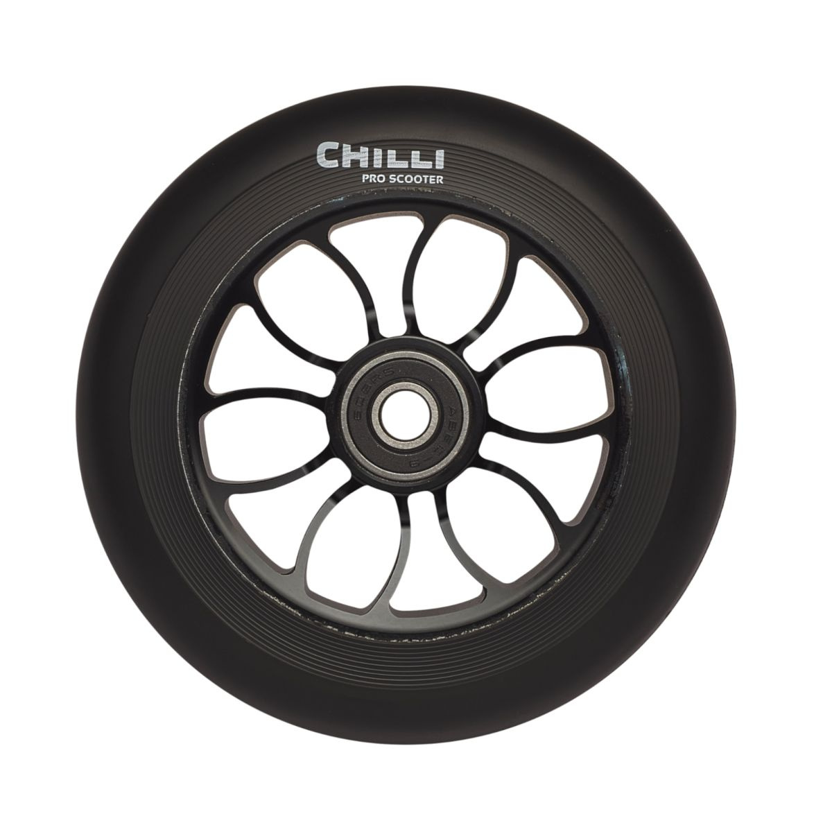 Super kolečka od značky Chilli. Kolečka mají průměr 110 mm a šířku 24 mm. Kolečka mají hliníkový střed, který je osazen ABEC9 ložisky.