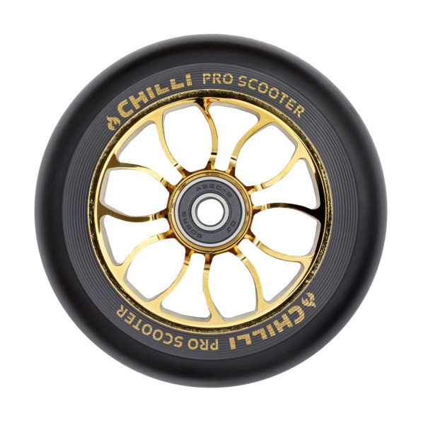 Super kolečka od značky Chilli. Kolečka mají průměr 110 mm a šířku 24 mm. Kolečka mají hliníkový střed, který je osazen ABEC9 ložisky.