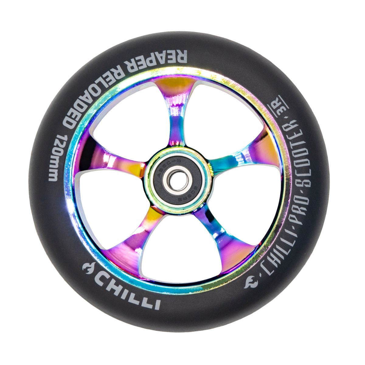 Výborné, 120 mm kolečka s paprskovým, hliníkovým středem.