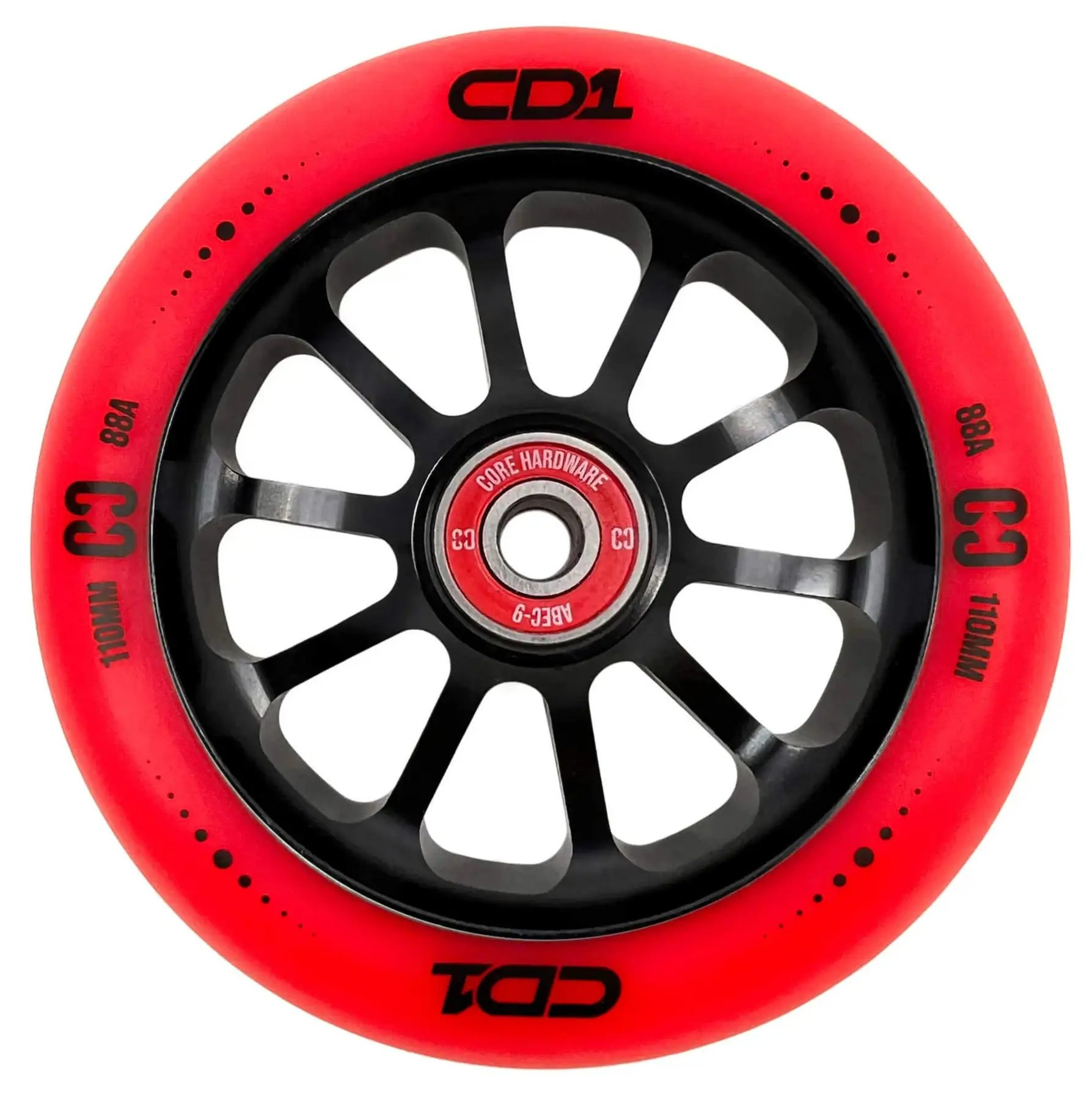 Kolečko CORE CD1 jsou vysoce kvalitní kolečko, které kombinuje pevnost, odolnost a styl. Toto kolečko je vyrobeno z prvotřídních materiálů a vydrží i ty nejintenzivnější jízdy. Konstrukce středu kolečka snižuje celkovou hmotnost a zlepšuje ovladatelnost. Ložiska kolečka jsou ABEC 9.