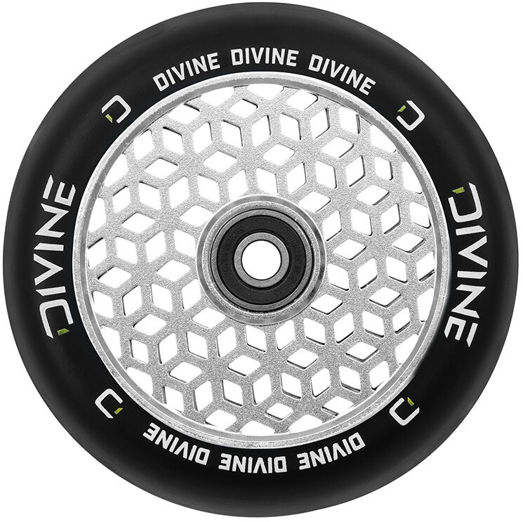 Výborné 110 mm kolečka s hliníkovým středem od nové české značky Divine. Šířka kolečka je standardní 24 mm. Ložiska ABEC 11 zaručují skvělou rychlost a přilnavost. Díky dutým a odlehčeným středům kolečka váží pouze 200 g. Doporučujeme všem skatepark jezdcům.