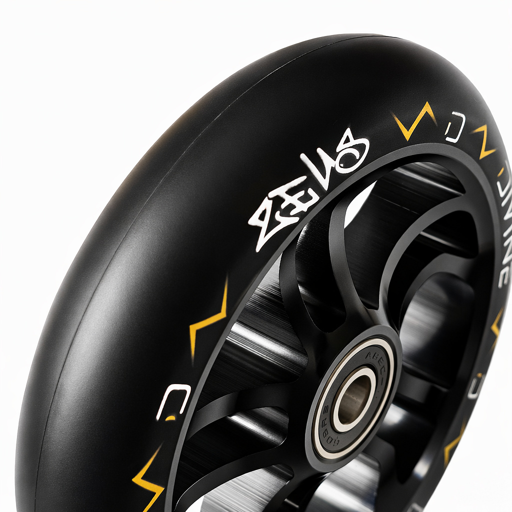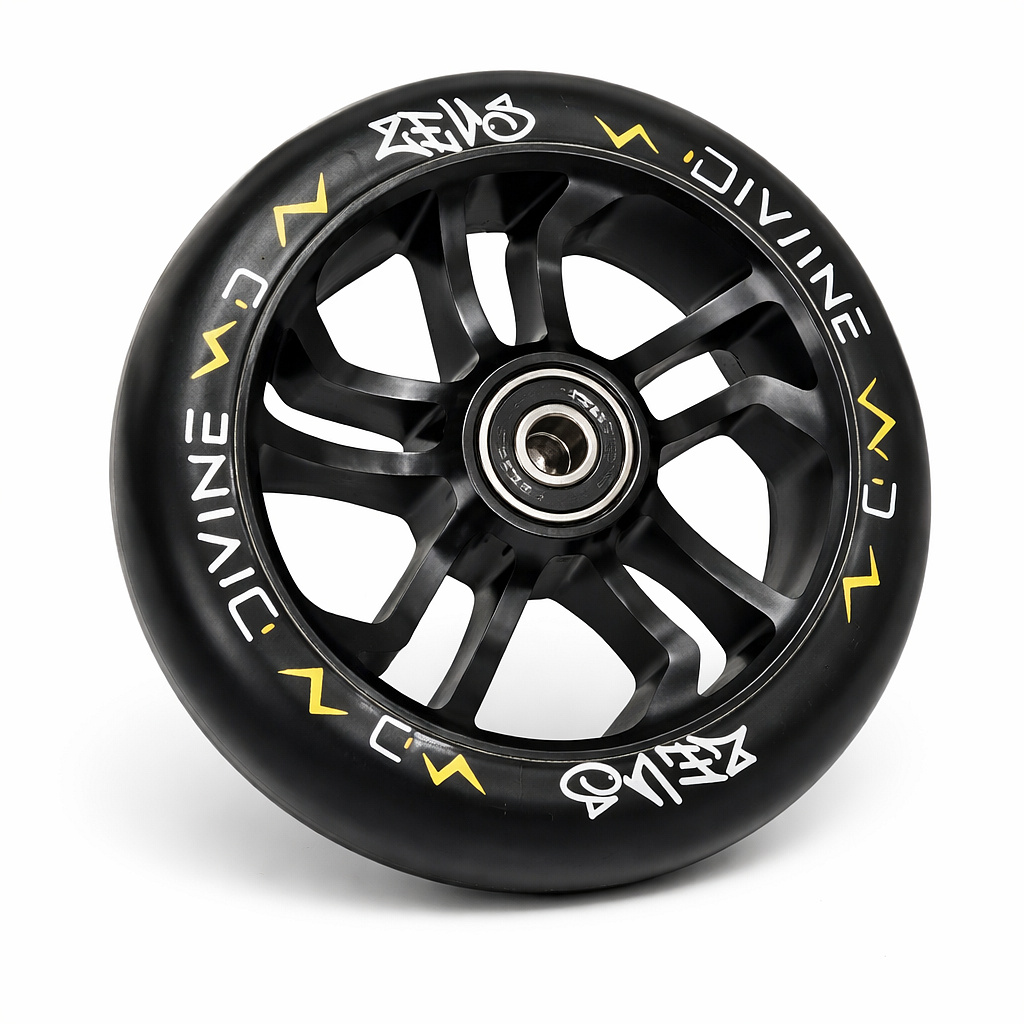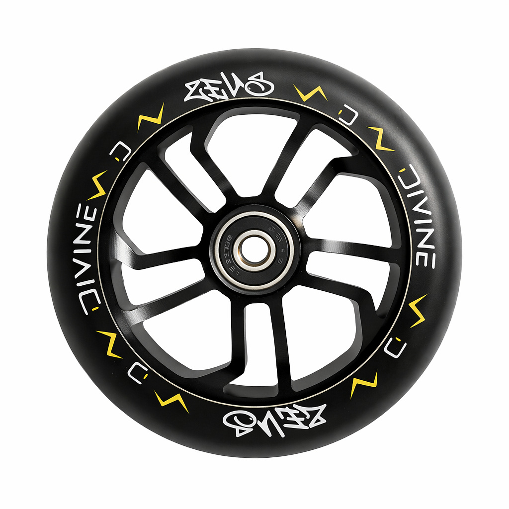 Výborné 120 mm kolečka s hliníkovým středem od nové české značky Divine. Šířka kolečka je standardní 24 mm. Ložiska ABEC 9 zaručují skvělou rychlost.
