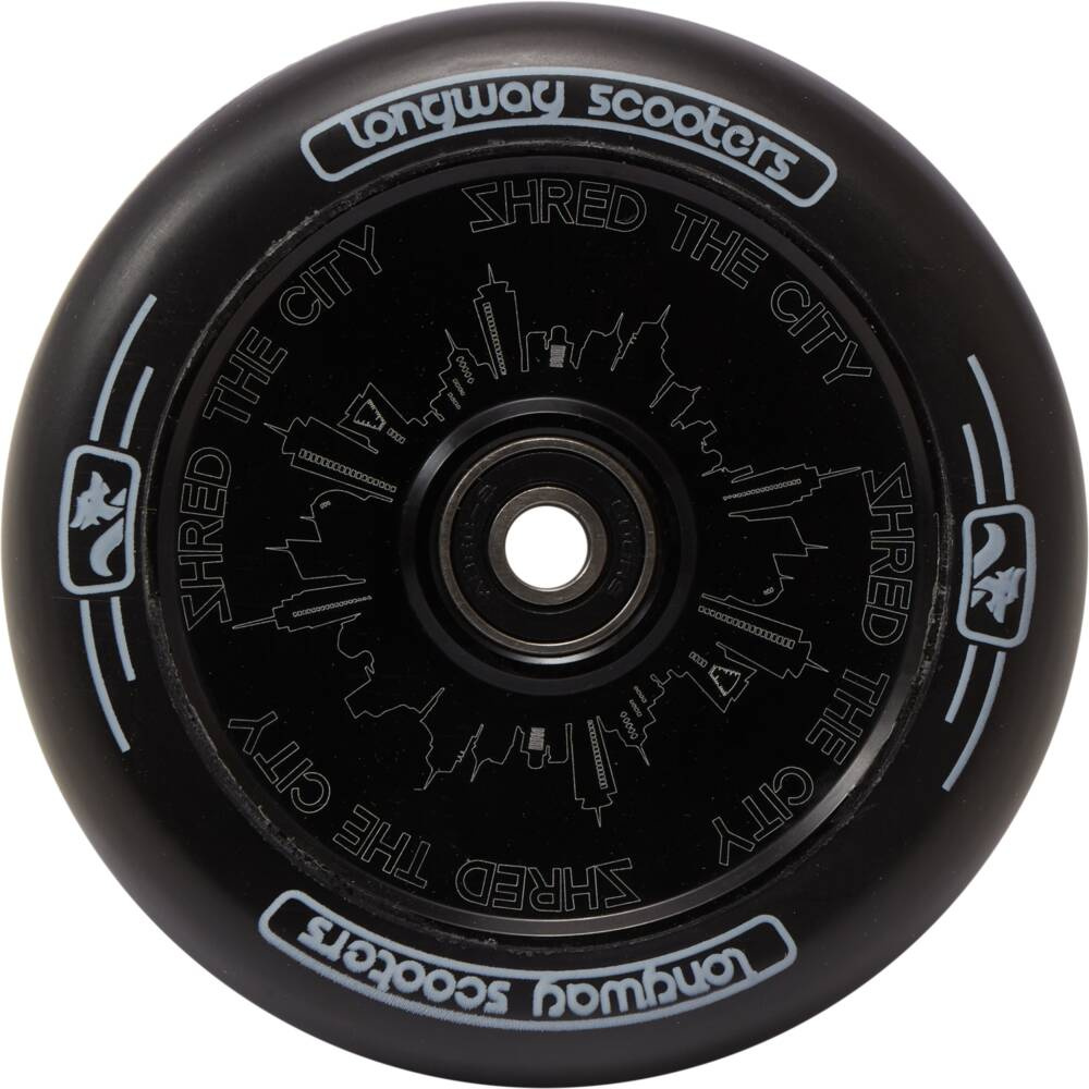 Výborné 110mm kolečko s nádherným designem. Kolečko má dutý střed. Díky tomu je lehčí. Plochý tvar gumy zajišťuje lepší přilnavost.