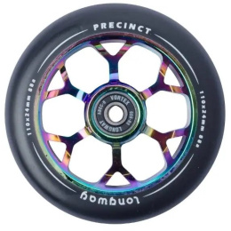 Kolečko Longway Precinct opravdu umí zaujmout svým agresivním vzhledem. Kolečko se vyrábí o průměru 110 mm a o šířce 24 mm. Kolečko má hliníkový střed s paprskovým vzhledem. Profil kolečka je kulatý, tudíž lépe přilne k povrchu. Hmotnost kolečka je 223 gramů. V kolečku jsou osazena kvalitní ABEC 9 ložiska. V BALENÍ NALEZNETE 1 KOLEČKO.