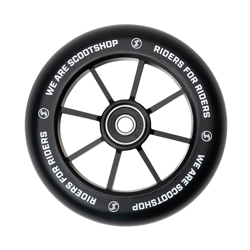 Kvalitní kolečka za super cenu? Neboj se, vyslyšeli jsme tvoji prosbu a udělali jsme naše vlastní Scootshop kolečka! Hmotnost jednoho kolečka je pouhých 210 gramů a to díky hliníkovému paprskovému středu. Jako rozměr koleček jsme zvolili 110 mm v průměru a 24 mm na šířku, díky tomu budou kolečka pasovat do většiny vidlic a desek. Kolečko je osazeno párem kvalitních ložisek o přesnosti ABEC9.