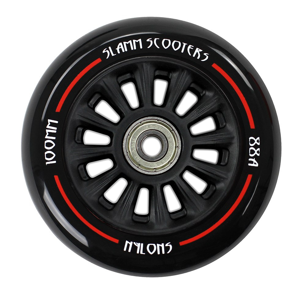 Kolečko od anglické značky Slamm o velikosti 100 mm. Hmotnost kolečka je 160 gramů a to díky plastovému středu. Kolečko je určené primárně pro začátečníky.