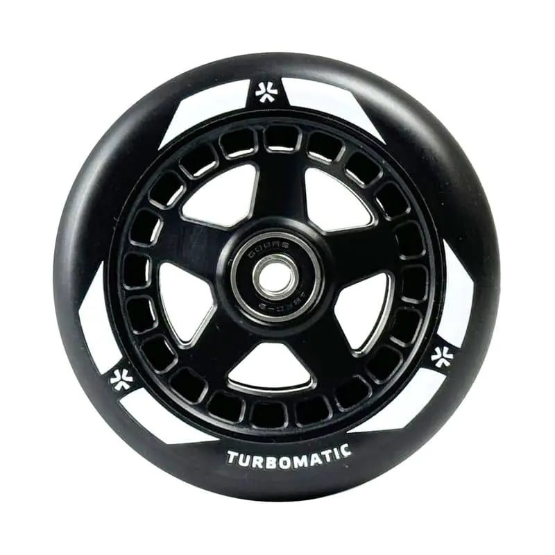 Super kolečka od lotyšské značky Union se sídlem v hlavním městě Riga konečně dorazily i k nám do Česka. Modelu Turbomatic zvládne zaujmout už na první pohled. Hmotnost jednoho kolečka je 270 gramů a to díky hliníkovému středu, který zajišťuje jak lehkost tak pevnost celého kolečka. Rozměr kolečka je 110 mm v průměru a 24 mm na šířku, tudíž padne skoro do všech koloběžek. Střed kolečka je osazený párem ABEC9 ložisek. V balení naleznete 1 ks kolečka.