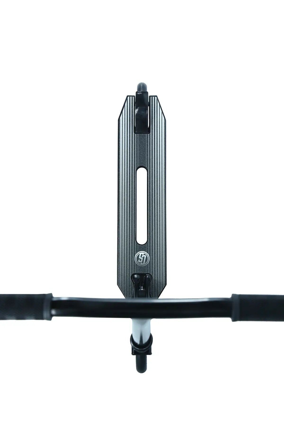 Řídítka o výšce 570 mm a šířce 457 mm jsou vyrobena z vysokopevnostní oceli a poskytují vynikající kontrolu a stabilitu. Ta jsou k palubě připevněna pomocí integrovaného 1 1/8" hlavového složení pro plynulé řízení a snadnou údržbu. Palubní deska o délce 48 cm a šířce 11,4 cm je vyrobena z lehkého hliníku a je vybavena výřezy na kolíky pro větší univerzálnost. Nabízí také dostatek prostoru pro pohodlné provádění triků jezdci všech velikostí. Brzda Flex Fender poskytuje spolehlivou brzdnou sílu a zajišťuje bezpečnost a kontrolu při jízdě.