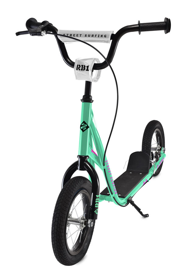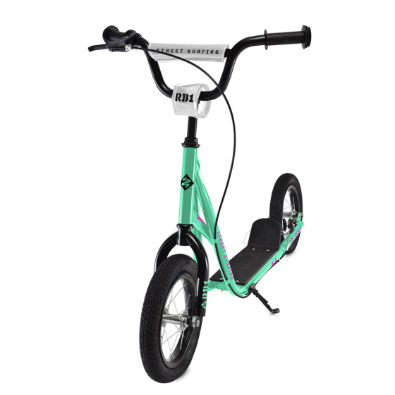 Koloběžka RB je skvělá pro udržení kondice a cestování na kratší vzdálenosti.<br> Vhodná pro děti.<br><br> VLASTNOSTI:<br> rozměry: 114 x 49 x 80 cm (dxšxv)<br> velikost nášlapu: 28,5 x 11 cm (dxš)<br> výška rámu od země: 11 cm<br> výška nášlapu od země: 13 cm<br> šířka řídítek: 49 cm<br> výška řídítek: 72 - 80 cm<br> rám a vidlice: ocelová<br> představec, hlavové složení, řídítka: ocelová<br> madla: gumová<br> brzdové páky: plastové<br> brzda: zadní “V” ocelová<br> přední a zadní kolo: 12,5 x 2,25" (32 x 5,7 cm)<br> ráfky: ocelové<br> náboje a ložiska: ocelová<br> nafukovací pneu: hladký vzorek<br> boční stojánek<br> hmotnost: 6,4 kg<br> doporučený věk: 5+<br> max. nosnost: 65 kg<br> splňuje normu EN14619