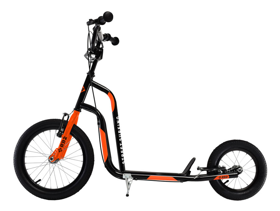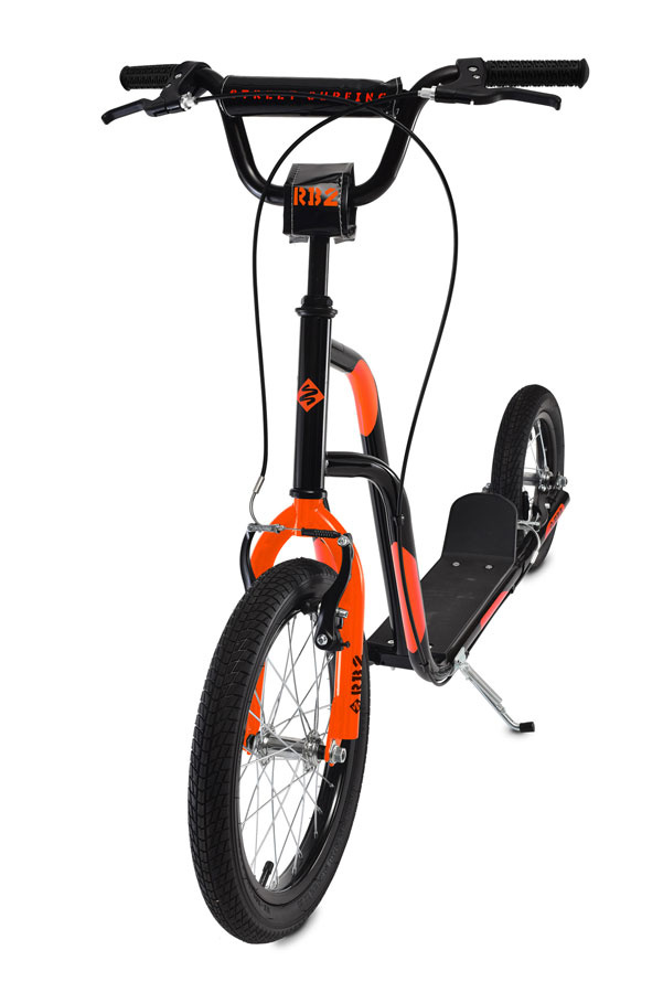 Koloběžka RB je skvělá pro udržení kondice a cestování na kratší vzdálenosti.<br> Vhodná především pro děti.<br><br> VLASTNOSTI:<br> rozměry: 126 x 54 x 92 cm (dxšxv)<br> velikost nášlapu: 28,5 x 11 cm (dxš)<br> výška rámu od země: 11 cm<br> výška nášlapu od země: 13-14 cm<br> šířka řídítek: 54 cm<br> výška řídítek: 81 - 90cm<br> rám a vidlice: ocelová<br> představec, hlavové složení, řídítka: ocelová<br> madla: gumová<br> brzdové páky: plastové<br> brzdy: přední a zadní “V” hliníkové<br> přední kolo: 16 x 2,125" (40,6 x 5,4 cm)<br> zadní kolo: 12,5 x 2,25" (32 x 5,7 cm)<br> ráfky: ocelové<br> náboje a ložiska: ocelová<br> nafukovací pneu: hladký vzorek<br> boční stojánek<br> hmotnost: 7,4 kg<br> doporučený věk: 10+<br> max. nosnost: 100 kg<br> splňuje normu EN14619