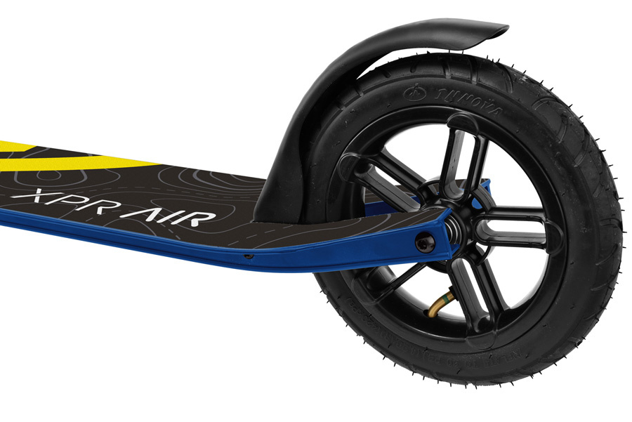 Koloběžku URBAN XPR AIR oceníte při jízdě do práce, do školy či při cestování po městě. S rychlým skládacím mechanizmem je lehce přenosná. Jede hladce a rychle. Nafukovací kolečka skvěle tlumí vibrace. Díky širokým řídítkům 46,5cm a sníženému nášlapu 7,5cm od země je koloběžka při jízdě velmi stabilní a snadno se na ní odráží. S velkými kolečky o průměru 20 cm snadno přejedete i drobné terénní nerovnosti.