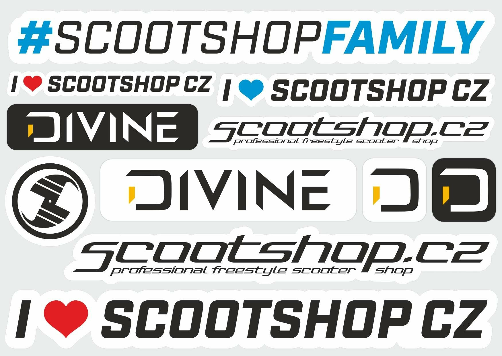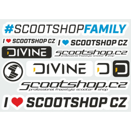 Popis produktu List samolepek Scootshop.cz X Divine MChceš si zkrášlit svoji koloběžku? Tak to určitě zvol tenhle list super samolepek od Scootshop.cz a Divine! kvalitní Scootshop samolepky velikost 148x105 mm 11 samolepek v různých velikostech