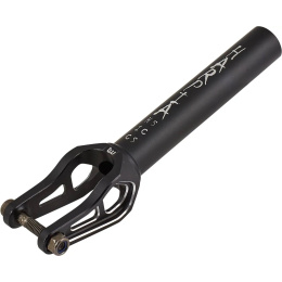 Pevná, lehká vidlice od Longway. Pro kompresní systém SCS nebo HIC. Pro kolečka až 125mm se šířkou 24mm. Vidlice je z jednoho kusu hliníku, má také integrovaný kroužek pro ložisko headsetu. A hlavně zahloubení pro matku pro jednoduší nasazení kolečka. Závit ve vidlici (pro SCS/HIC šroub) je pro šrouby M8 (pevnější, nepovoluje se).