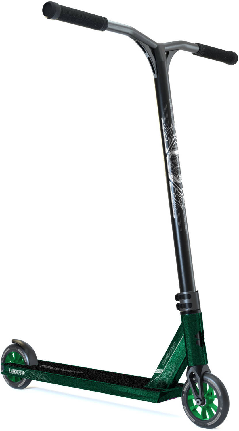 Výborná, lehká freestyle koloběžka, která je určená pro parkové ježdění. Koloběžka je celohliníková. Díky tomu je lehčí než u konkurenčních značek. Deska má super rozměry do skateparku - 520 mm x 122 mm, je pro integrované headsety s Peg-cut box endem. Kolečka o velikosti 120 mm jsou rychlejší a přilnavější k povrchu. Váha koloběžky je pouze 3,4 kg! Compr. systém je IHC.
