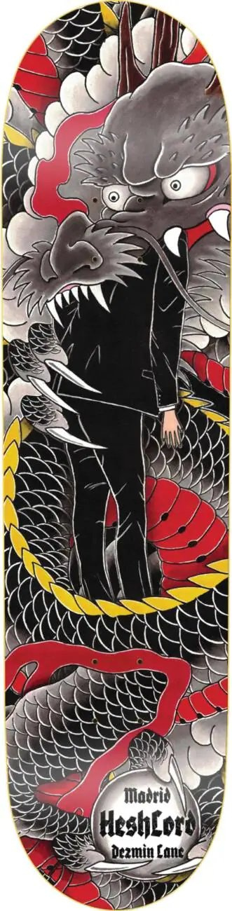 HeshLord od Madrid je špičková skate deska, vyrobená z 7vrstvého severoamerického javoru. Severoamerický javor dává každému boardu optimální „pop“ a dlouhou životnost. V barvách spodní i dolní strany nedochází k žádným změnám, takže výsledné barvy budou přesně stejné jako na obrázcích.