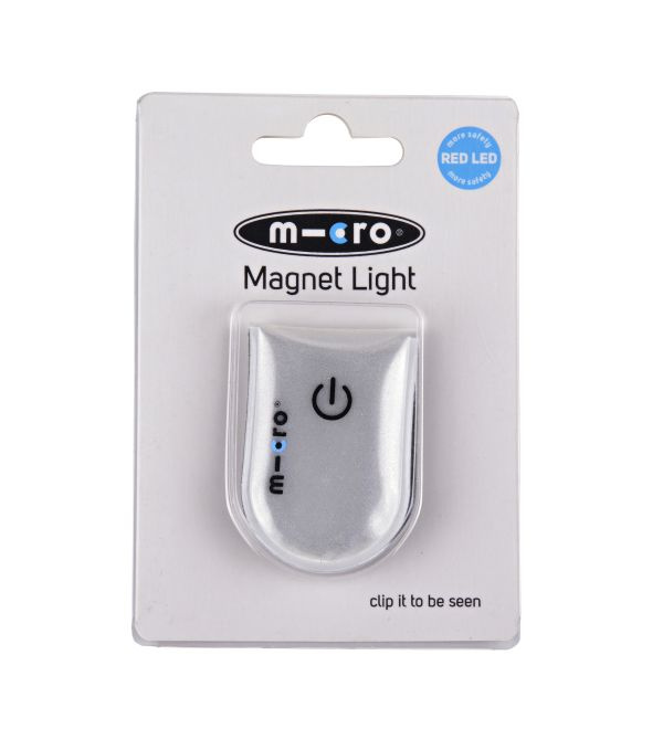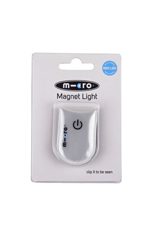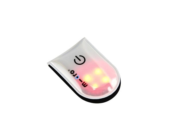 Originální magnetické světlo značky Micro se 4 červenými LED diodami. Díky magnetickému uzávěru (klipu) lze snadno přitisknout k oděvu, batohu nebo tašce.
