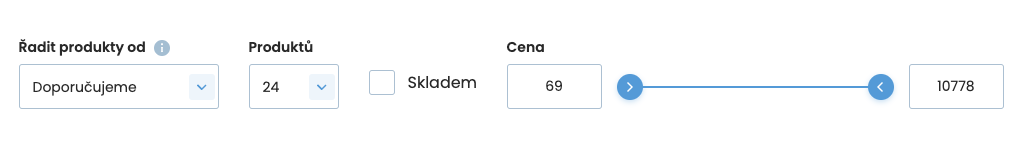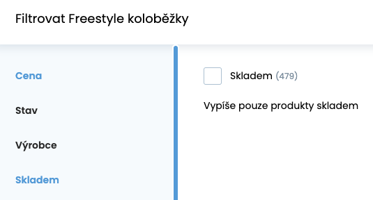 Pokud potřebuješ vyfiltrovat zboží, které máme skladem, stačí kliknout na Skladem ve filtraci a je to!