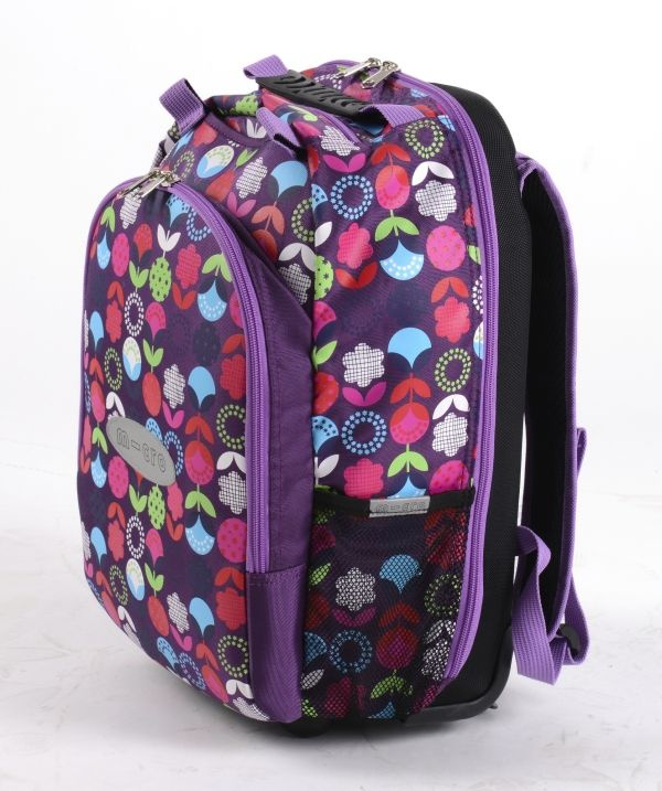 Batoh má kapacitu 16 litrů, s inteligentním využitím prostoru a je tak připraven na všechny školní pomůcky. V přední, velké, zipem uzavíratelné kapse, naleznete další menší kapsičky, poutka a organizér pro tužky. V hlavním, zipem uzavřeném prostoru, je i vyhrazená kapsa pro notebook. Po obou stranách má batoh síťované kapsy. Batoh má pevná záda, která dobře chrání věci uvnitř tašky. Polstrované popruhy na ramena zajistí pohodlné nošení batohu na zádech. Ve spodní části jsou integrovaná kolečka. Batoh má na sobě bezpečností reflexní prvek.
