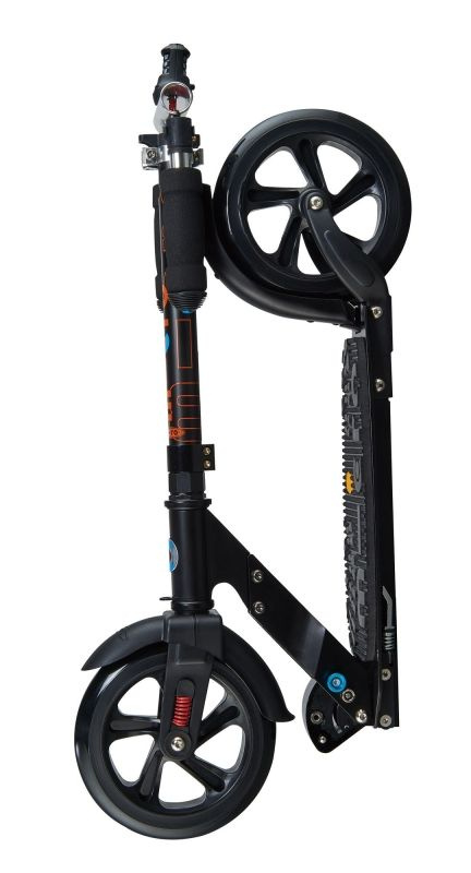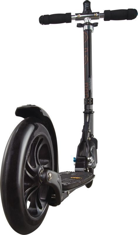 Koloběžka je osazena pevnými 200 mm kolečky určenými pro svižnou jízdu.