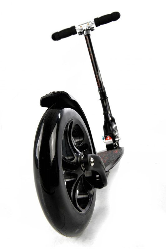 Předností koloběžky jsou její extra velká 200 mm kolečka pro svižnou a pohodlnou jízdu.
