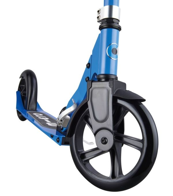 Předností této koloběžky jsou rychlá a pohodlná 200 mm PU kolečka, která se osazují i na koloběžky pro dospělé. Výhodou 200mm oproti 120 mm nebo 100 mmm kolečkům je, že větší kolečka lépe překonají nerovnosti vozovky. Nevýhodou velkých koleček je horší skladnost složené koloběžky a větší poloměr zatočení.