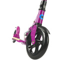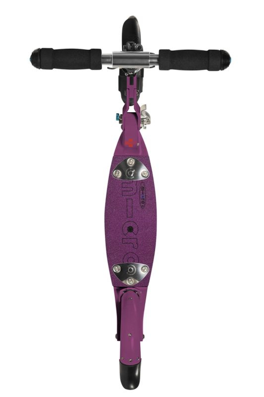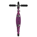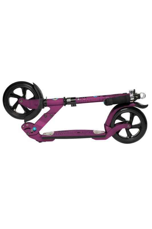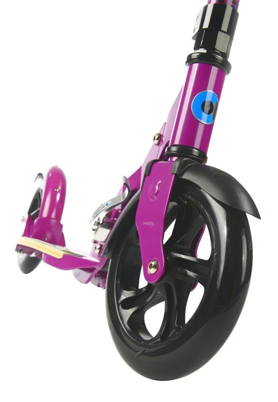 Koloběžka Micro Flex Aubergine převzala všechny výhody koloběžky Micro Flex a k tomu přibyla pevná kolečka 200mm. Prakticky se jedná o Micro Flex Air s 200 mm pevnými kolečky. Pevná kolečka mají větší dynamiku při jízdě, delší dojezd na jeden odraz, nevstřebávají však tolik nerovnosti povrchu jako nafukovací kolečka. Díky patentované dřevo-vláknité desce se skelnými vlákny (fibreglass) je koloběžka FLEX Aubergine nejpohodlnější koloběžkou vybavenou polyuretanovými 200 mm kolečky. Při odrážení dochází k mírnému prohýbání nášlapné desky, což zaručuje vyšší komfort během jízdy.Více