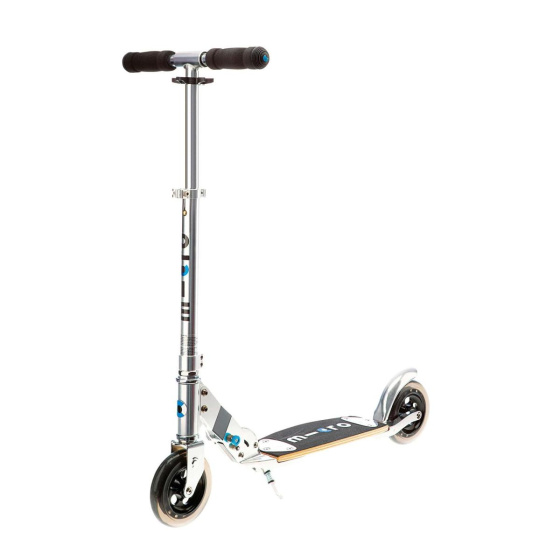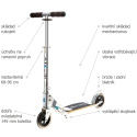 Koloběžka Micro Flex je velmi pohodlná skládací koloběžka. Tuto vlastnost jí zaručují především kolečka velká 145 mm a jedinečná dřevo-vláknitá deska se skelnými vlákny (fibreglass), který odolá tomu nejnáročnějšímu zatížení a dá koloběžce výjimečné vlastnosti. Na koloběžku je možné použít ramenní popruh.