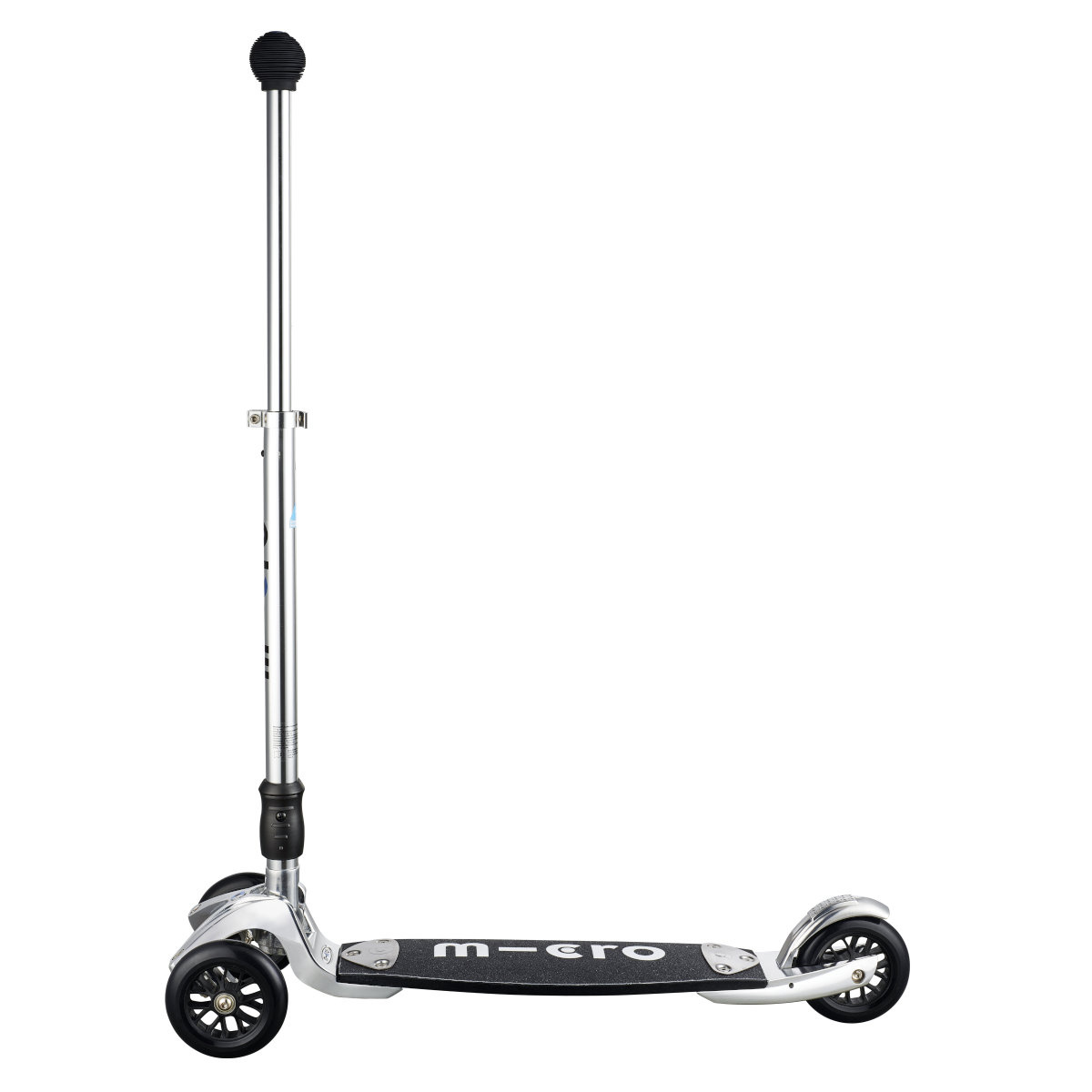 Micro Kickboard Original 2.0 umožňuje běžnou nenáročnou jízdu, ale zároveň i dokonalé "surfování po asfaltu". Zatáčí přenesením váhy, jízda je tak velmi zábavná a velmi podobná surfování, skateboardingu, nebo jízdě na snowboardu. Micro Kickboard Original 2.0 je vybaven řídítky typu T-Bar a joystick v jednom balení. Řídítka jsou snadno měnitelná, takže pokud máte náladu nasadíte joystick a rázem máte adrenalinový zážitek z jízdy. Pokud budete chtít klidnou, stabilní jízdu, nasadíte řídítka typu T-bar. Řídítková tyč je skládací a výškově nastavitelná. Micro Kickboard Original 2.0 je osazen jedinečnou deskou z kompozitních materiálů, která dává kickboardu vynikající jízdní vlastnosti. Deska je částečně pružná, což zvyšuje pocit při dynamické jízdě a zároveň působí jako odpružení od vibrací způsobených nerovným povrchem. Micro Kickboard Original je připraven pro běžnou jízdu ale i pro různé triky.Více
