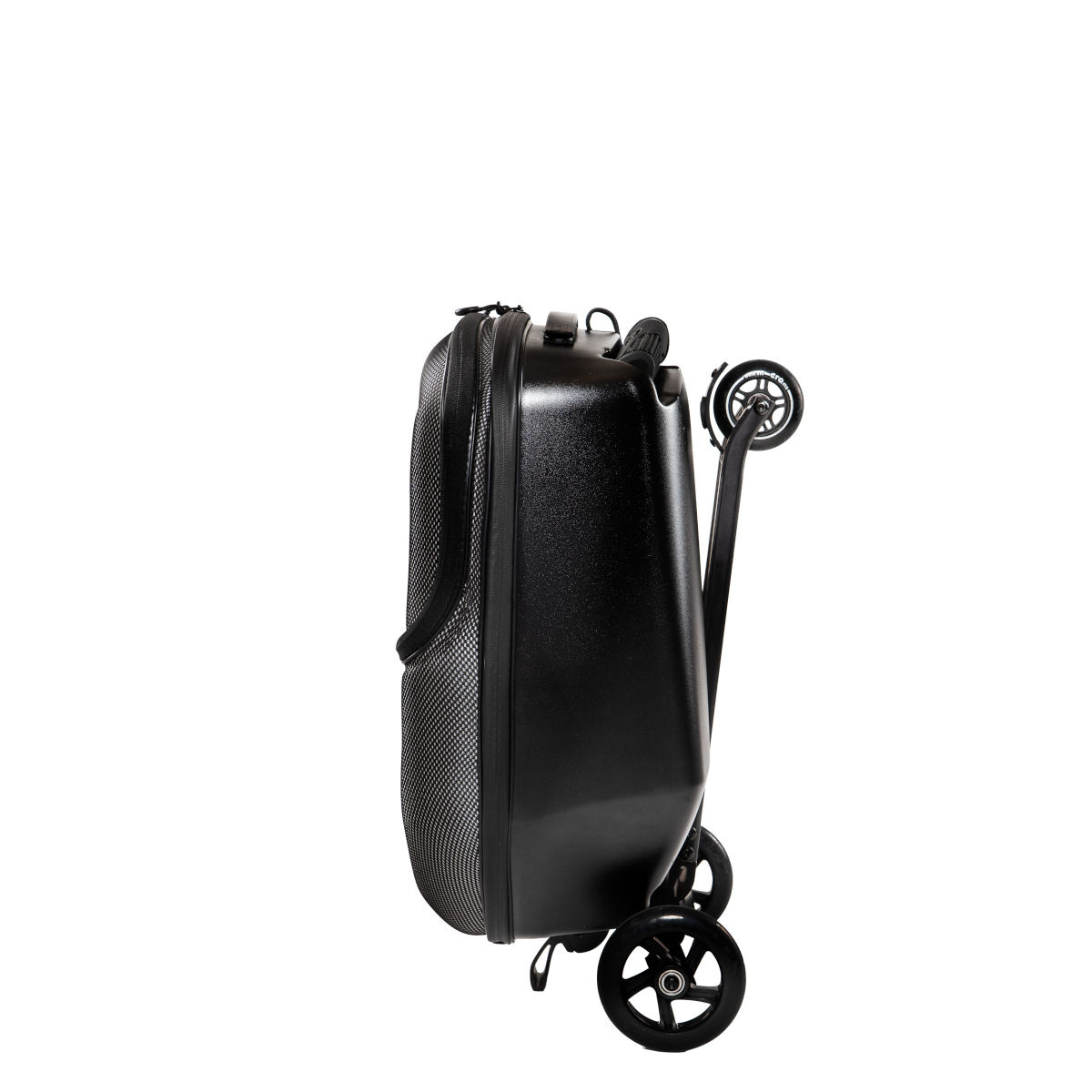 Jednoduchým vyklopením nášlapné desky se z cestovního kufru stane koloběžka se kterou budete bez námahy popojíždět po letištích, vlakových nádražích, halách či mezi různými přestupy.