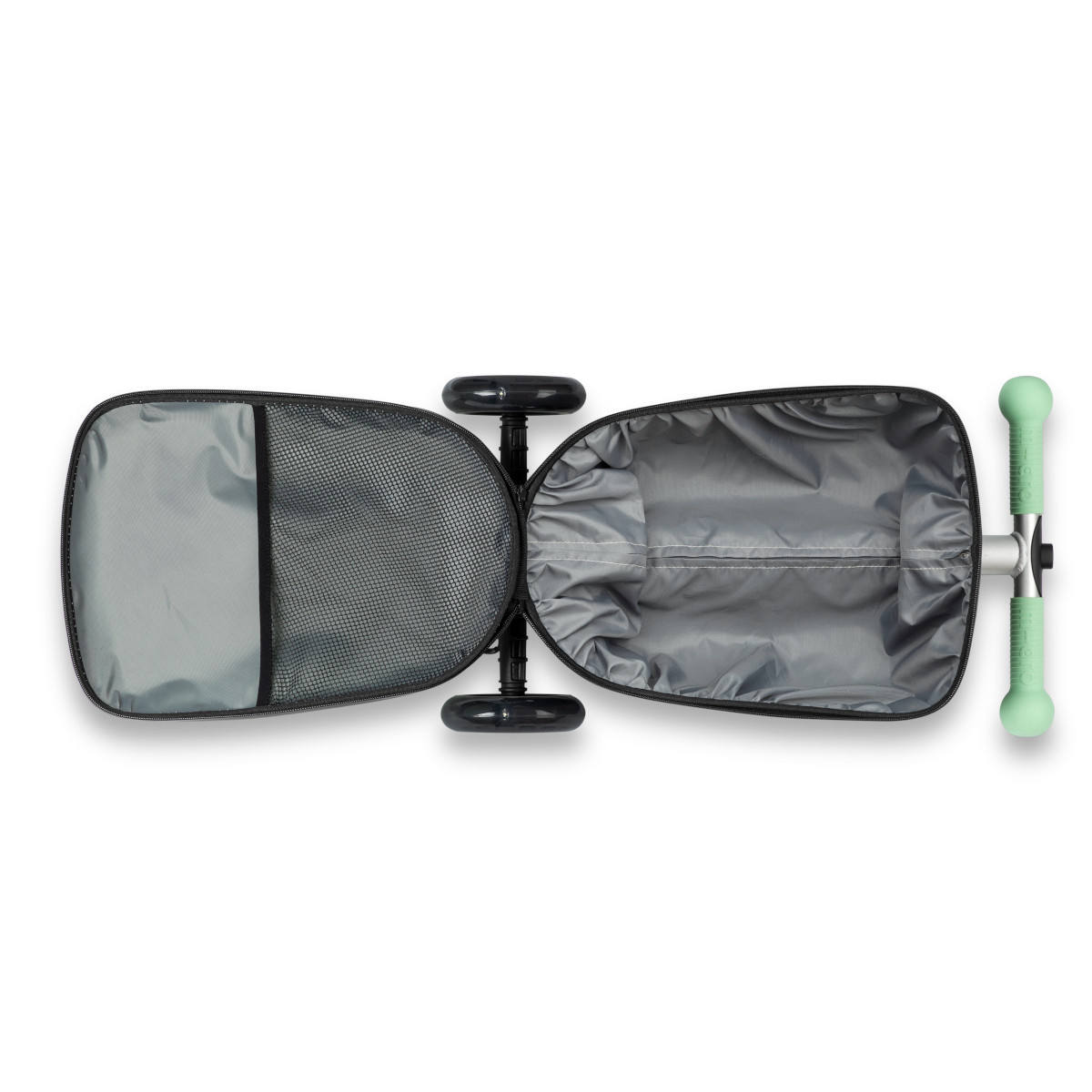 Micro Luggage Junior lze pomocí dvou jednoduchých kroků změnit z kufru na koloběžku a naopak. Složený kufr přenesete snadno do letadla, vlaku nebo auta. Od nynějška si malí cestovatelé mohou převážet své hračky už úplně sami.