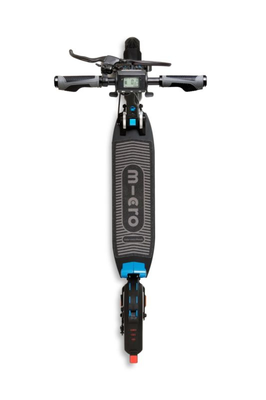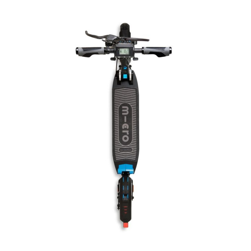Mobilitu a snadnou manipulaci při skládání koloběžky zajišťuje nový skládací mechanismus Micro. Při skládání stačí lehce rukama zatlačit dopředu na řídítka a nohou zmáčknout modrou páčku na skládacím mechanismu a máte složeno.