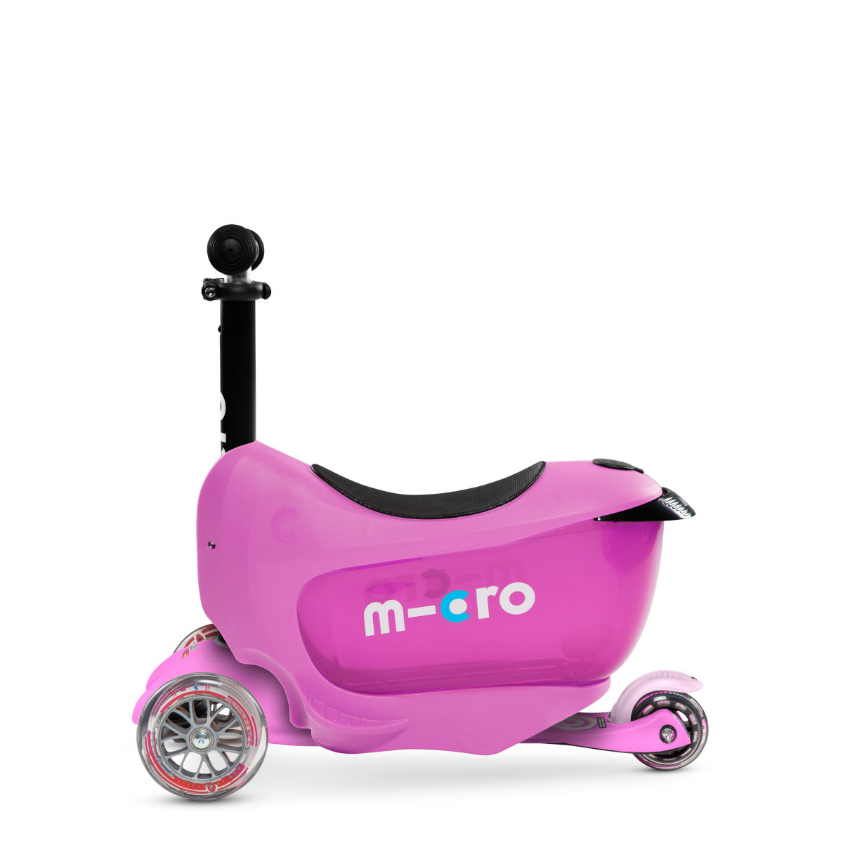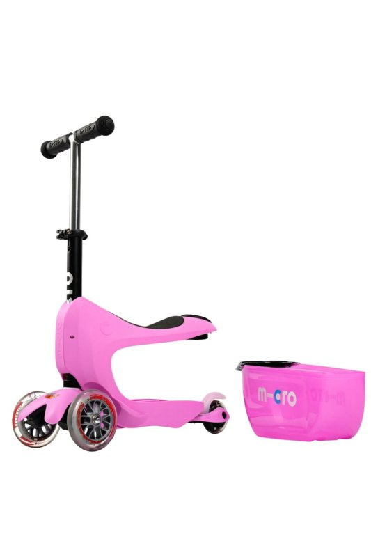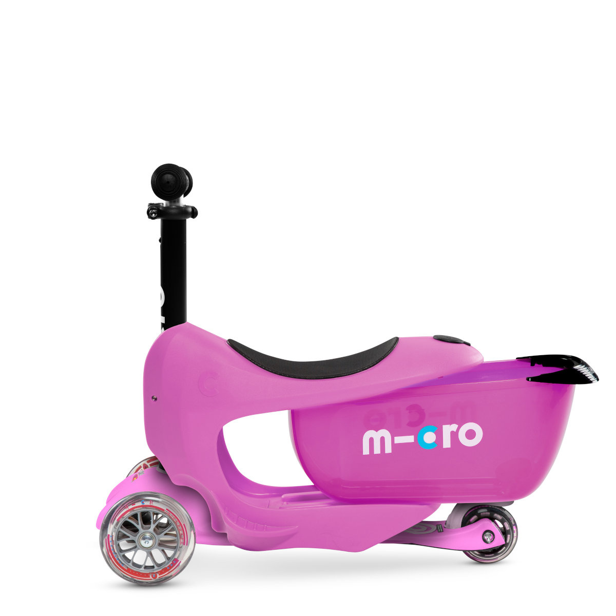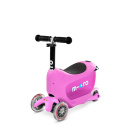 Mini2go Deluxe v růžové barvě je inovativní dětské odrážedlo s úložným prostorem a koloběžka v jednom. Tuto trojkolku využijí děti od 1,5 roku jako klasické odrážedlo a v pozdějším věku jako trojkolku nebo lépe řečeno koloběžku.