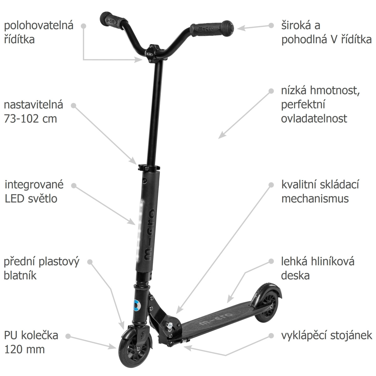 Sprite Deluxe Black je vylepšená varianta světově proslulé a léty prověřené klasické hliníkové koloběžky Micro Sprite. Koloběžka je ve výrazném a líbivém černém provedení, které zaujme jak teenagera, tak i juniora.