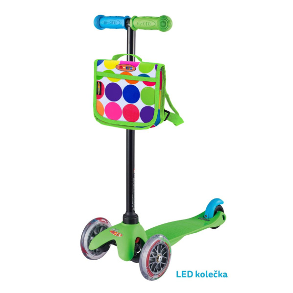 Součástí koloběžky je dětský batůžek Neon Dot, který je možné nosit na zádech nebo připínat na koloběžku.