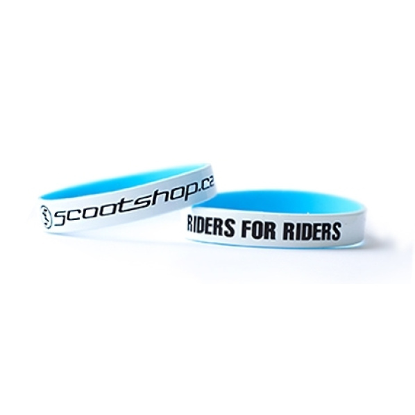 Popis produktu Náramek Scootshop.cz Pevný silikonový náramek - dvoubarevný - lakovaný - originální design - 2 nápisy: " logo Scootshop.cz" a "Riders for Riders"