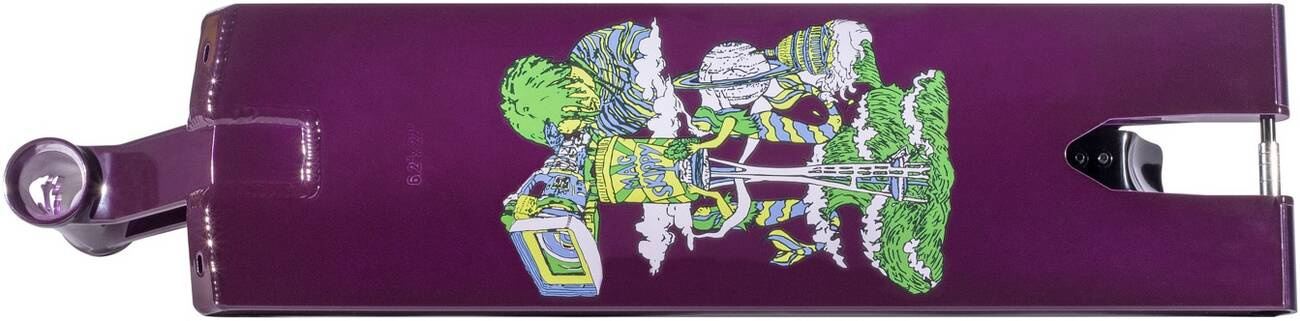 This is a high performance pro scooter deck made from light yet durable Aluminum 6061-T6. Its box-cut shape allows grinding without the need to mount pegs. This scooter deck fits wheels with a diameter up to 125mm. All the necessary hardware to mount wider 30mm wheel is included in the package.