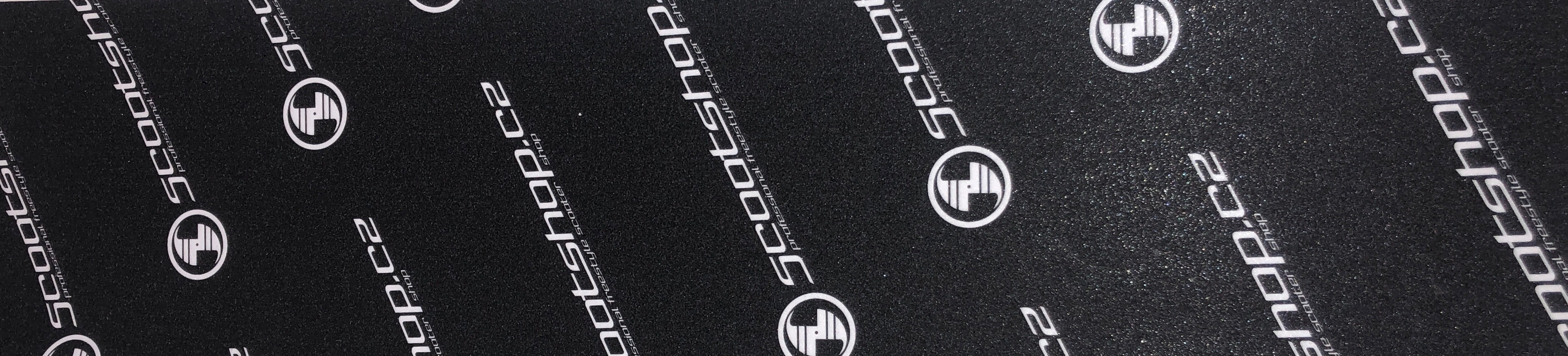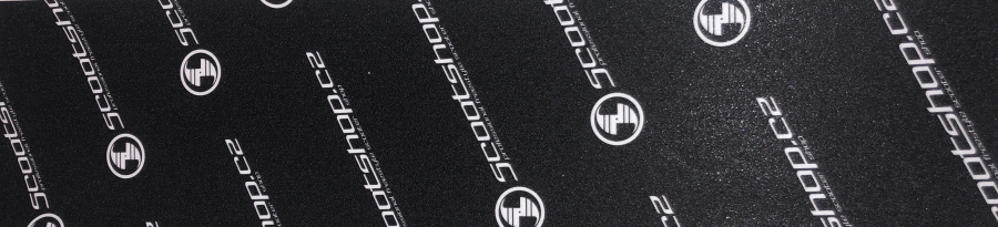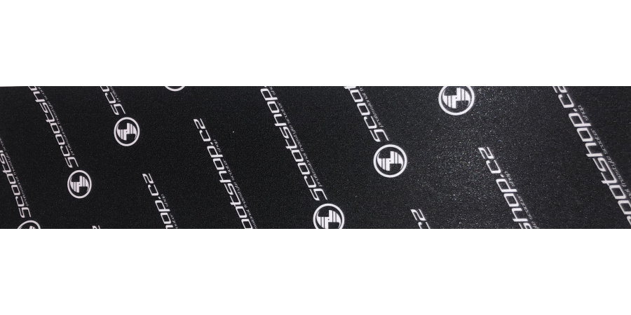 První verze našeho Scootshop griptapu je tu. Griptape měří 580 mm na délku a 150 mm na šířku.