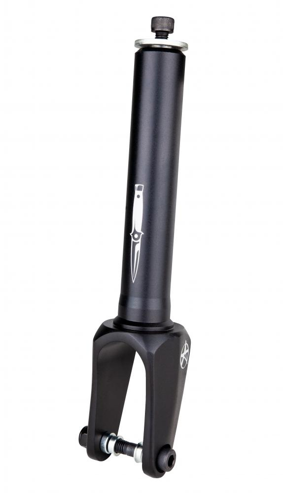 Výborná, lehká, hliníková vidlice od legendární značky Addict. Vidlice pro středy koleček 24 mm tak i 30 mm. (spacery jsou součástí balení). Vidlice má integrovaný kroužek pro integrované headsety.