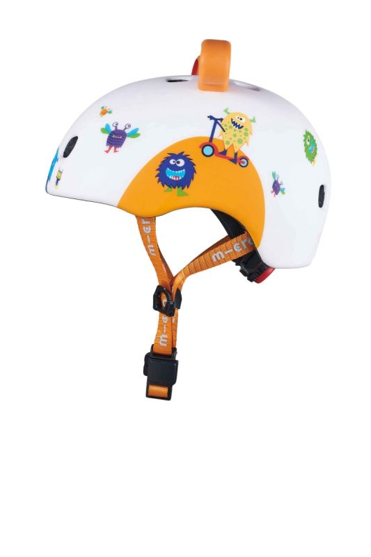 Bezpečná přilba značky Micro s nastavitelnou velikostí pomocí upínacího kolečka. Jedná se o 3D přilbu s designem příšerek. Přilba je vhodná pro jízdu na koloběžce, dětském odrážedle, kolečkových bruslích a skateboardu. Extra polstrování uvnitř přilby pro větší komfort a bezpečí. 8 větracích otvorů zajistí kvalitní odvětrávání hlavy. Inovativní magnetický systém zapínání výrazně zvyšuje bezpečnost a zjednodušuje zapínání řemínku pod bradou.